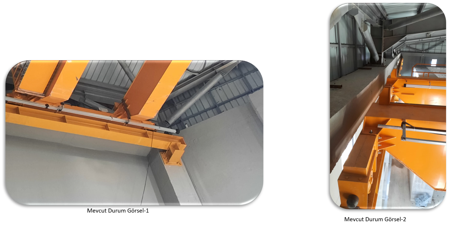 Vinç 20 ton kapasiteli çift kiriş gezer köprülü olup atölye içerisindeki mevcut yola kurulacaktır. Yürüme yolu ve taşıyıcı kirişi mevcut olup raylar yapılacaktır.