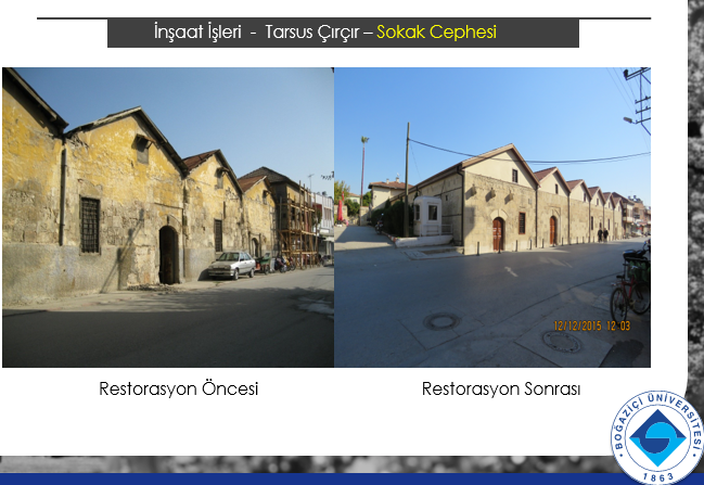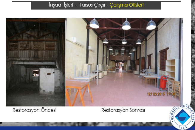 Mersin’in Tarsus ilçesinde, Akdeniz kıyısında yer alan Tarsus Çırçır Fabrikası, 1865 yılında bölgedeki Avrupalıların girişimiyle Çukurova Bölgesi’nde kurulan ilk endüstri yapılarından biridir. Pamuk elyafının çekirdeğinden ayrılması ve depolanması işlerinde kullanılmak üzere inşa edilen fabrika, farklı sahipler tarafından kullanılmış ve 1980’lere kadar işlevini korumuş. 1980’lerde özgün işlevini yitirerek bir süre depo olarak kullanılmış ve sonunda terk edilmiş. 2000 yılında Kültür Bakanlığı, yapı grubunu kamulaştırarak endüstri mirası olarak tescil etmiş ve Tarsus Kent Araştırma Merkezi işlevi ile restorasyon projelerinin hazırlanması amacıyla SAYKA’yı görevlendirmiş. Belirlenen ilk işlev doğrultusunda proje çalışmaları devam ederken, 2.500 m2 alanı olan yapı grubunun Abdi İpekçi Caddesi’ne cephe veren yaklaşık 1.000 m2 5 hangarı Kültür Bakanlığı tarafından Boğaziçi Üniversitesi’ne tahsis edilmiş. Bu gelişme ile yapının bu bölümünün Boğaziçi Üniversitesi’nin talepleri dikkate alınarak Gözlükule Kazısı Çalışma Ofisi ve Eser Depoları olarak, Kültür Bakanlığı yönetiminde kalan diğer bölümün ise Tarsus Kent Araştırma Merkezi olarak yeniden projelendirilmesine karar verilmiş.