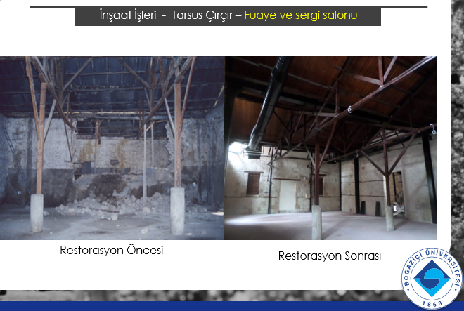 Onarım müdahalelerinde özgün doğal taş, harç, döşeme kaplaması gibi yapıya uyumlu malzemelerin tercih edilmesi, özgün çatı fenerlikleri korunarak doğal aydınlatma ve havalandırma sağlanması, çatıya kurulan fotovoltaik ve güneş panelleri ile yapının ihtiyacı olan enerji üretiminin sağlanıp, sıcak su ihtiyacının karşılanması, yaz aylarında kazı ekibinin; eserleri yıkama çalışmalarında kullanmak üzere yağmur sularının depolanmasına yönelik bir sistem geliştirilerek, su kullanımının azaltılması kriterleri bağlamında yapı, LEED Gold sertifikası almış. Böylece, Boğaziçi Üniversitesi Gözlükule Kazıları Araştırma Merkezi, LEED Gold sertifikası alan ilk endüstri mirası kültür varlığı olmuş. Boğaziçi Üniversitesi (BOUN) Gözlükule Kazıları Araştırma Merkezi, 2017 yılında tamamlanarak kullanıma açılmış. 2019 yılında 13. TSMD Mimarlık Ödülleri’nde Yapı Dalı’nda ve Avrupa’nın koruma alandaki en prestijli ödülü kabul edilen Avrupa Kültürel Miras Ödülleri’nde (Europa Nostra Ödülleri) Koruma Dalı’nda ödüle değer görülmüş.