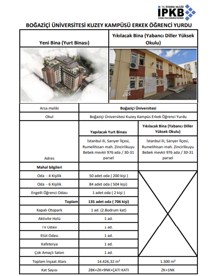 İstanbul Valiliği İstanbul Proje Koordinasyon Birimi tarafından finanse edilecek ve Boğaziçi Üniversitesi Kuzey Kampüs Erkek Öğrenci Yurdu yapılması amaçlanmıştır.