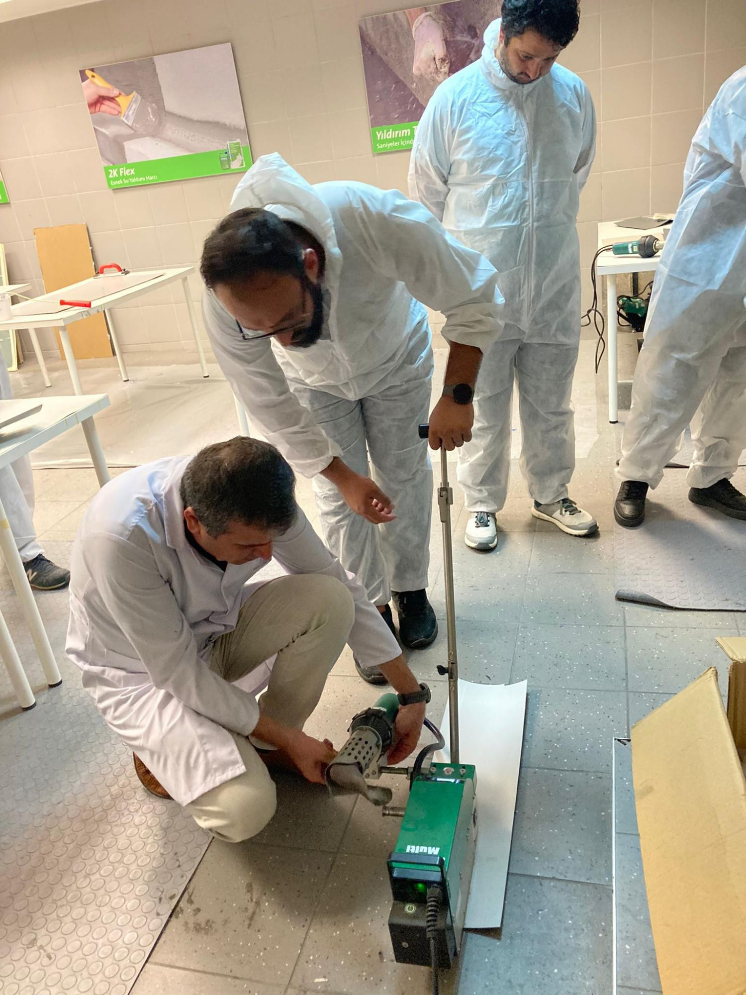Personelimiz uygulamalı derslerde güçlü su sızıntılarının önüne geçmeyi, iyi bir su yalıtımı yapmayı, çeşitli yalıtım malzemeleri ve gerekli cihazları maksimum verimde kullanmayı deneyimledi.